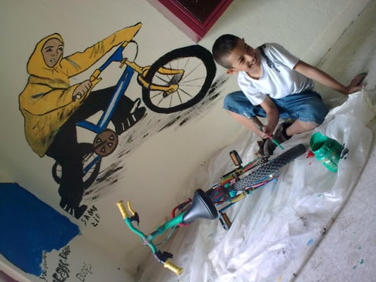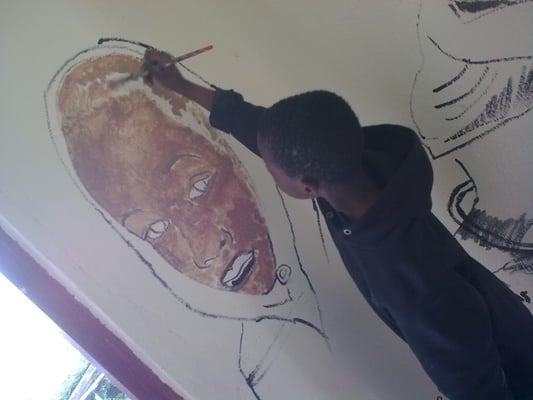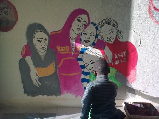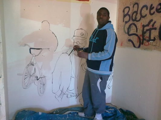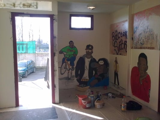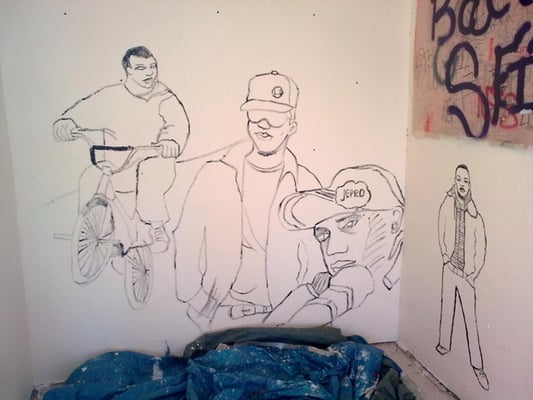 Dans les cages d'escalier de la Cité de Montfermeil qui a aujourd'hui partiellement disparu, vidéo-projeter, dessiner puis peindre les jeunes habitants de l'immeuble. Tout le travail est effectué par les jeunes (5 à 25 ans) de la préparation aux finitions.