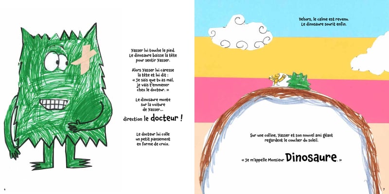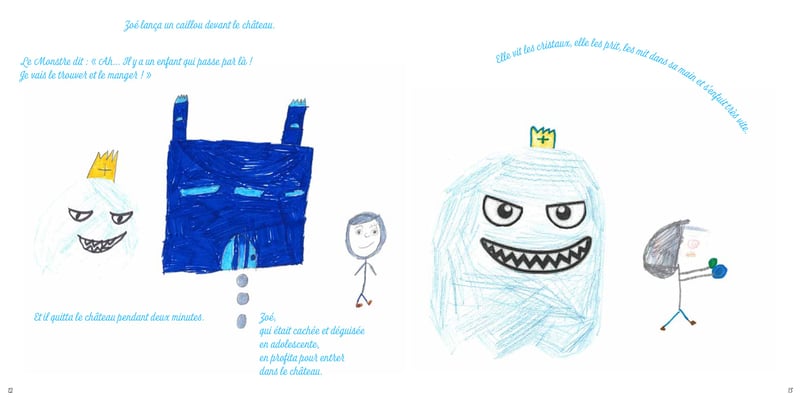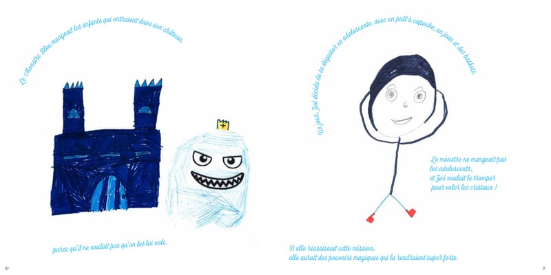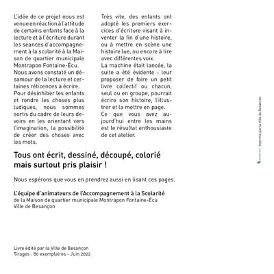 Avec les enfants de l'aide aux devoirs de la Maison de Quartier de Montrapon Fontaine Ecu (CP à 6ème), écrire, concevoir, dessiner, coller, illustrer, mettre en page et imprimer un livre. Ici un extrait.