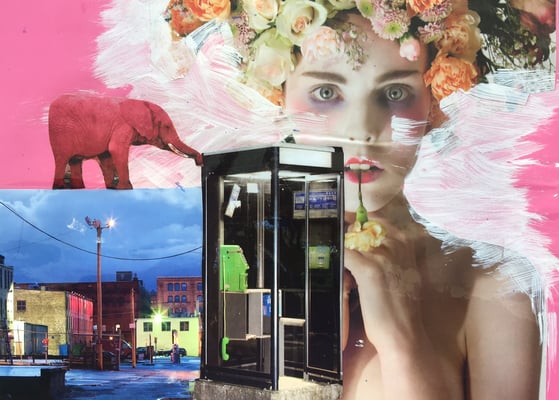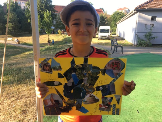 Atelier collages en stand pied d'immeuble durant Quartiers d'Eté à Besançon.