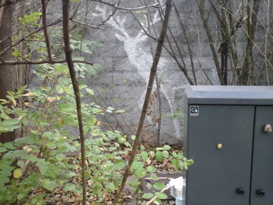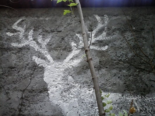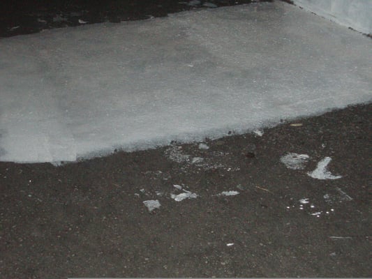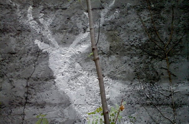 Les passants marchent sur le dessin et laissent des traces de pas rouges derrière eux