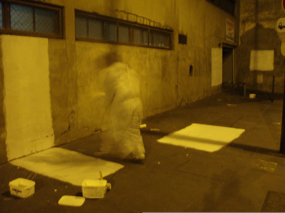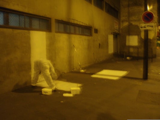 Happening à la peinture rouge effectué dans les couloirs du métro parisien au niveau de la station Opera.