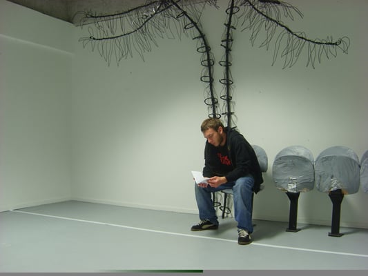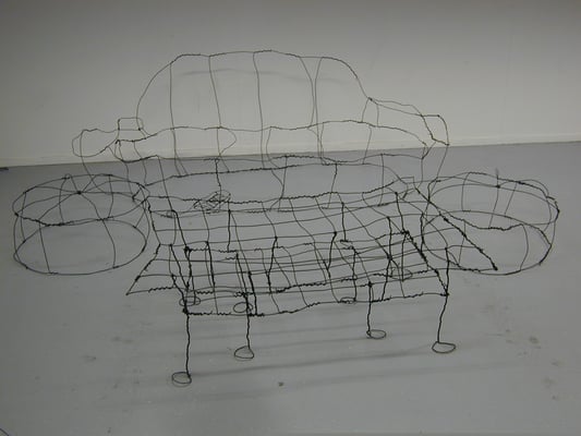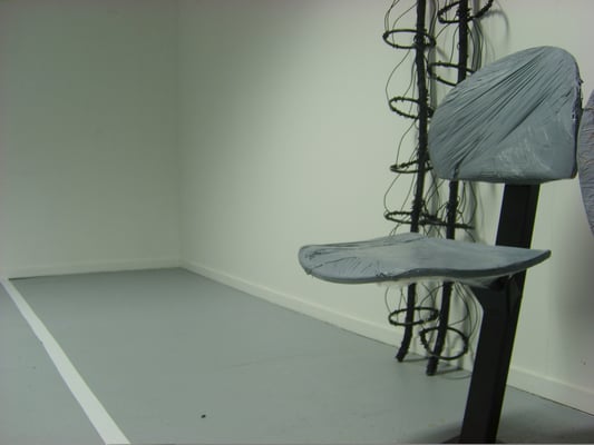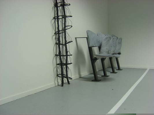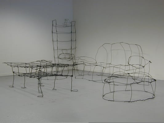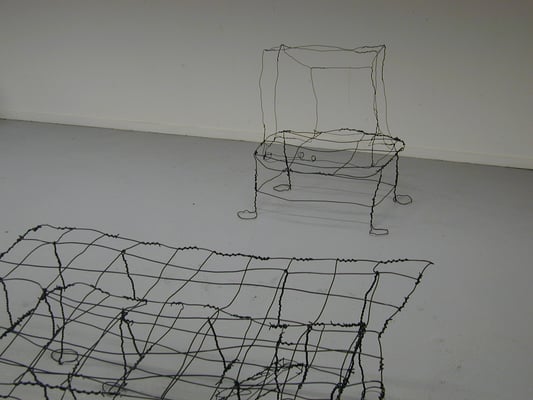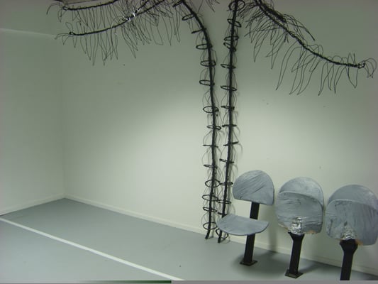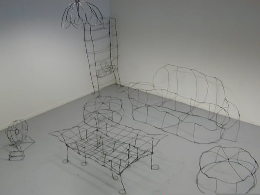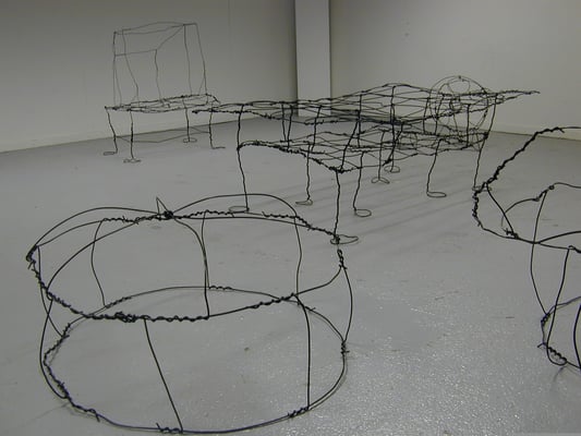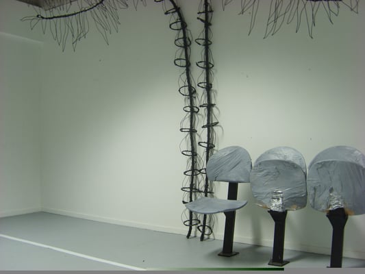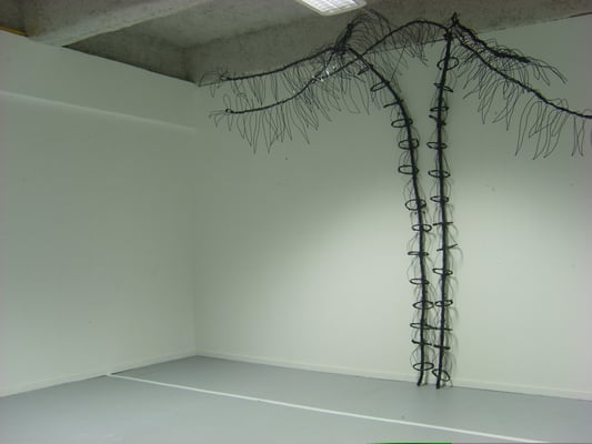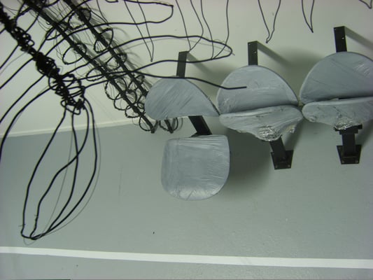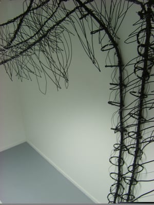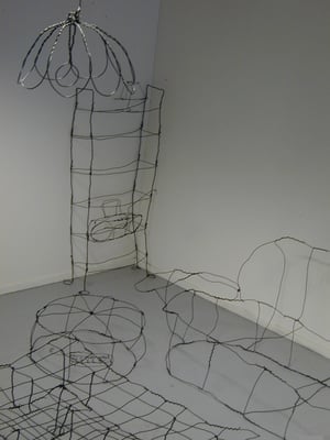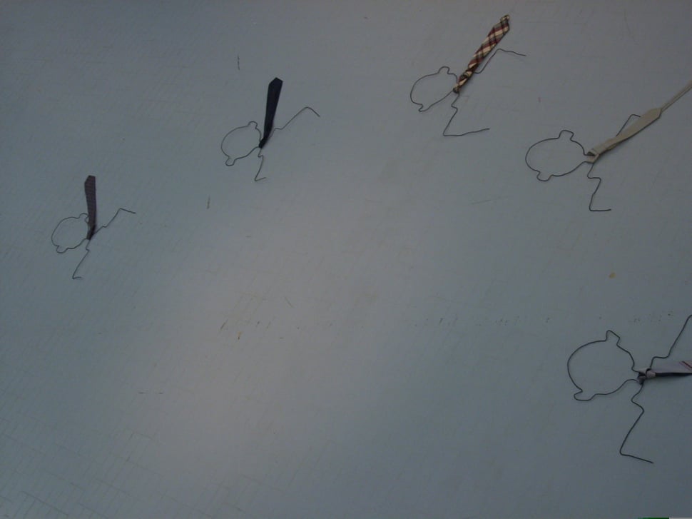 Installation fil de fer et cravates.