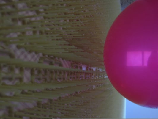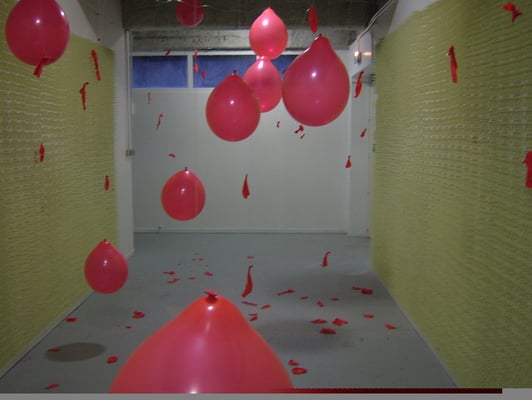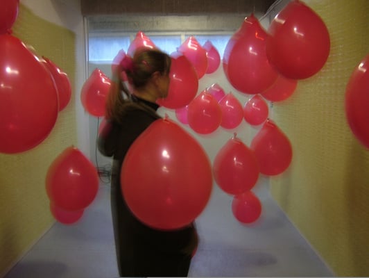 Lorsque le visiteur se promène il crée des courants d'air faisant remuer les ballons. Ils se heurtent alors entre eux et vont exploser contre les murs piquants. Parfois le courant d'air agit de lui même et sans visiteur un ballon explose de façon spontanée.