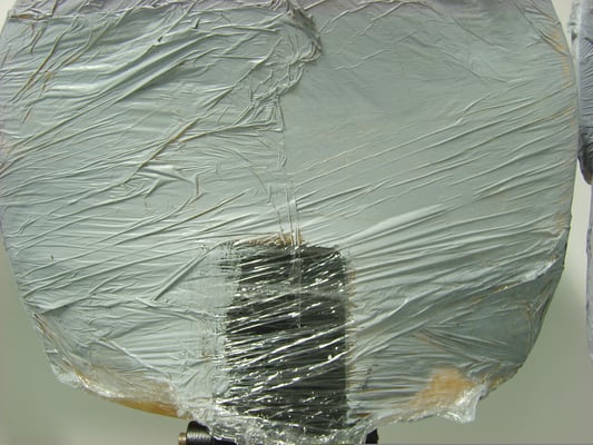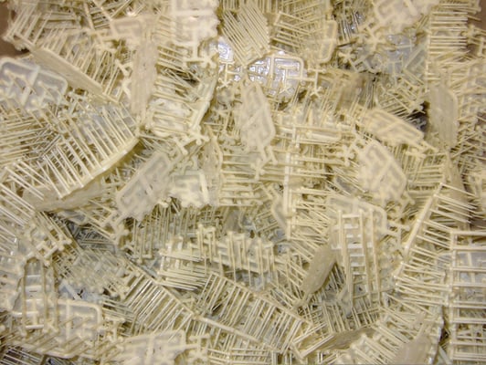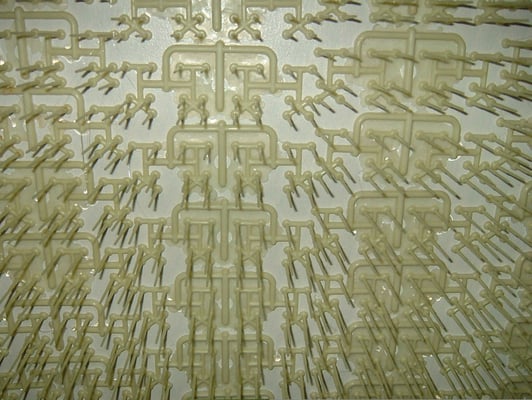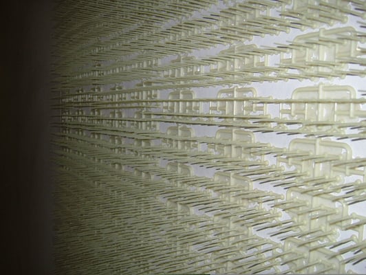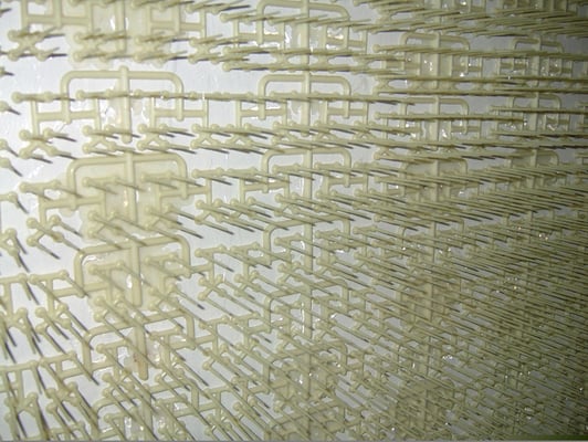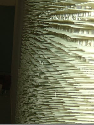 5000 pièces provenant d'une usine de plasturgie automobile collées sur deux murs de 7 mètres se faisant face.